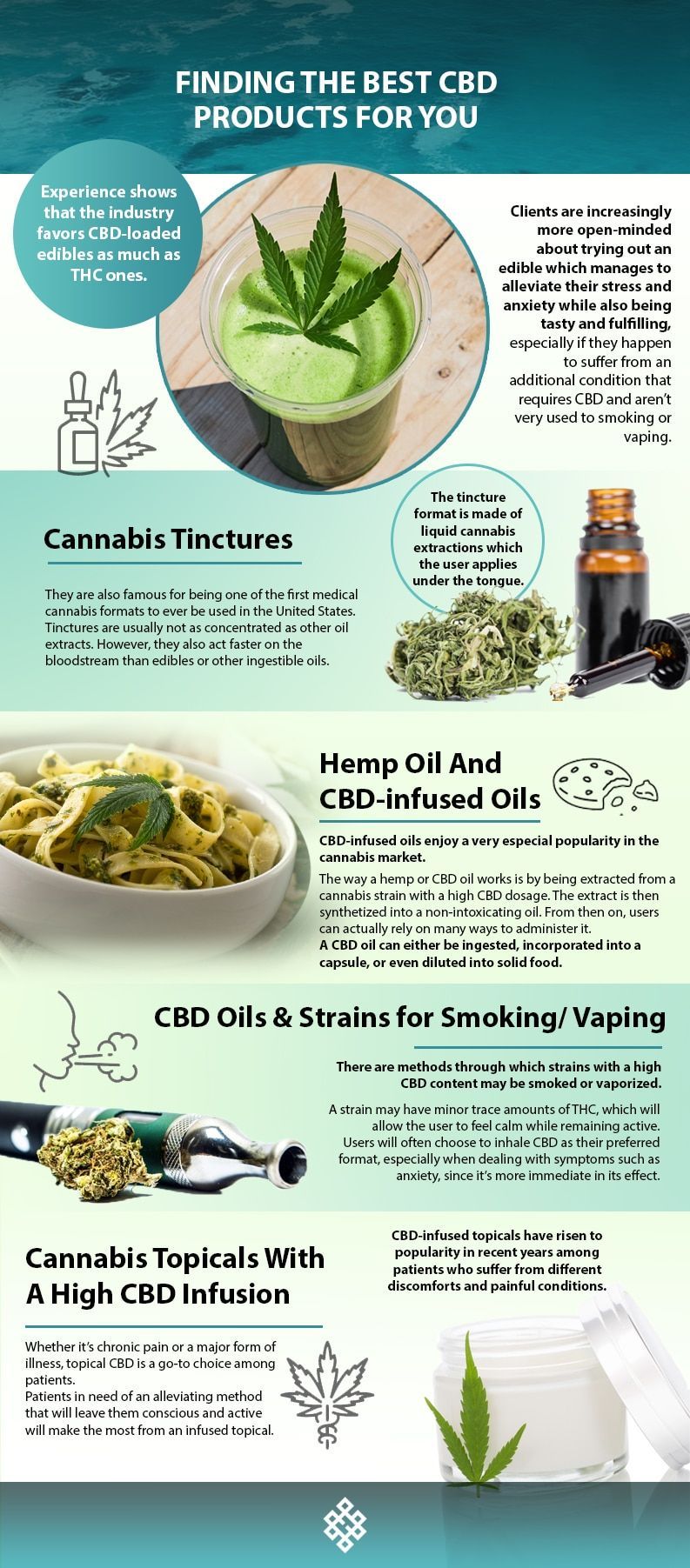 As it happens with other endocannabinoids such as THC, CBD is distilled and processed into several different formats. Cannabis enthusiasts make the most from the format that best suits their personalities and lifestyles.