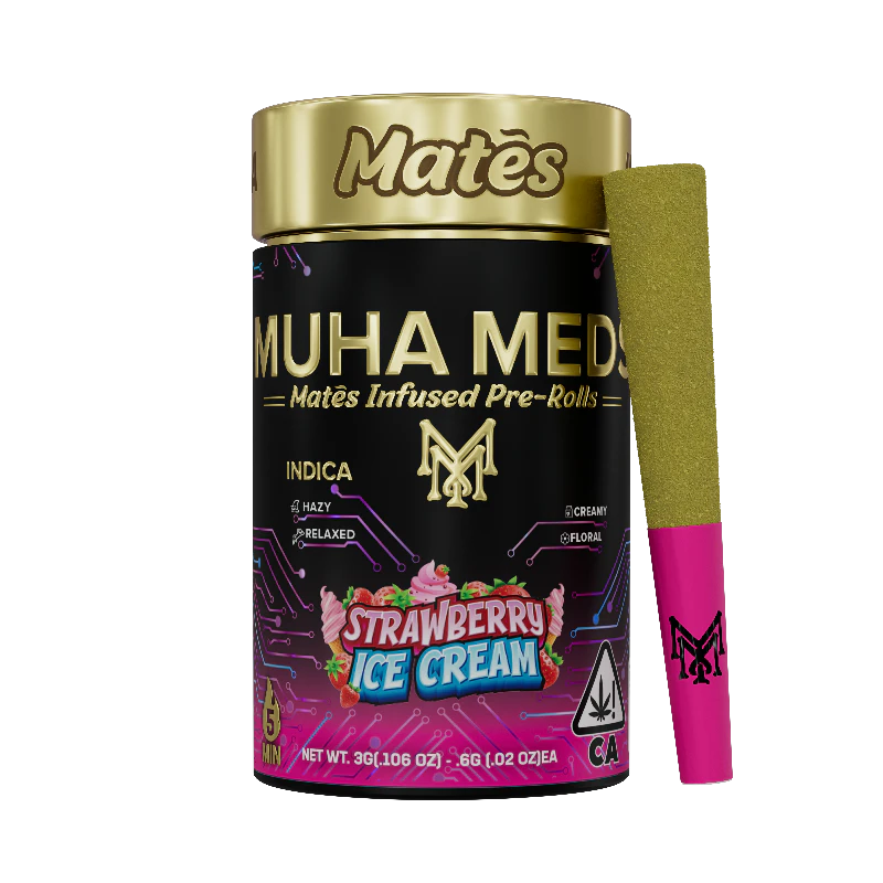 Muha Meds - Strawberry Ice Cream Kief Coated Mates Infused Preroll 5pk 3g