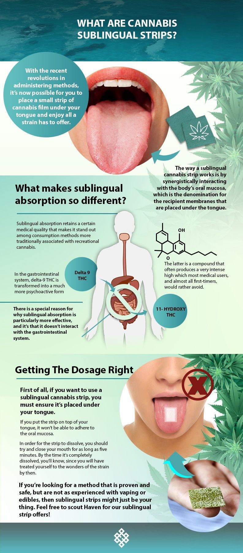 The way a sublingual cannabis strip works is by synergistically interacting with the body's oral mucosa, which is the denomination for the recipient membranes that are placed under the tongue. Sublingual membranes themselves are probably as easy to get through for cannabis as the digestive system, though their purpose is to withstand stretching and shearing from chewing. The membranes also help cells regenerate faster. They also cover the deep tissues and organs from the mouth so as to protect them from microorganisms.